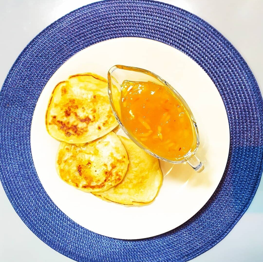 Разогрейте сковороду и налейте растительное масло. Жарьте оладьи с обеих сторон до золотистой корочки. Подавайте с апельсиновым джемом или вареньем по вашему вкусу – это придаст блюду особый шарм.