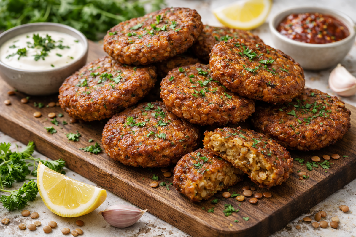 Объединить чечевицу с овощами, добавить специи и панировочные сухари. Для получения однородной массы можно использовать блендер или просто размять с помощью вилки.