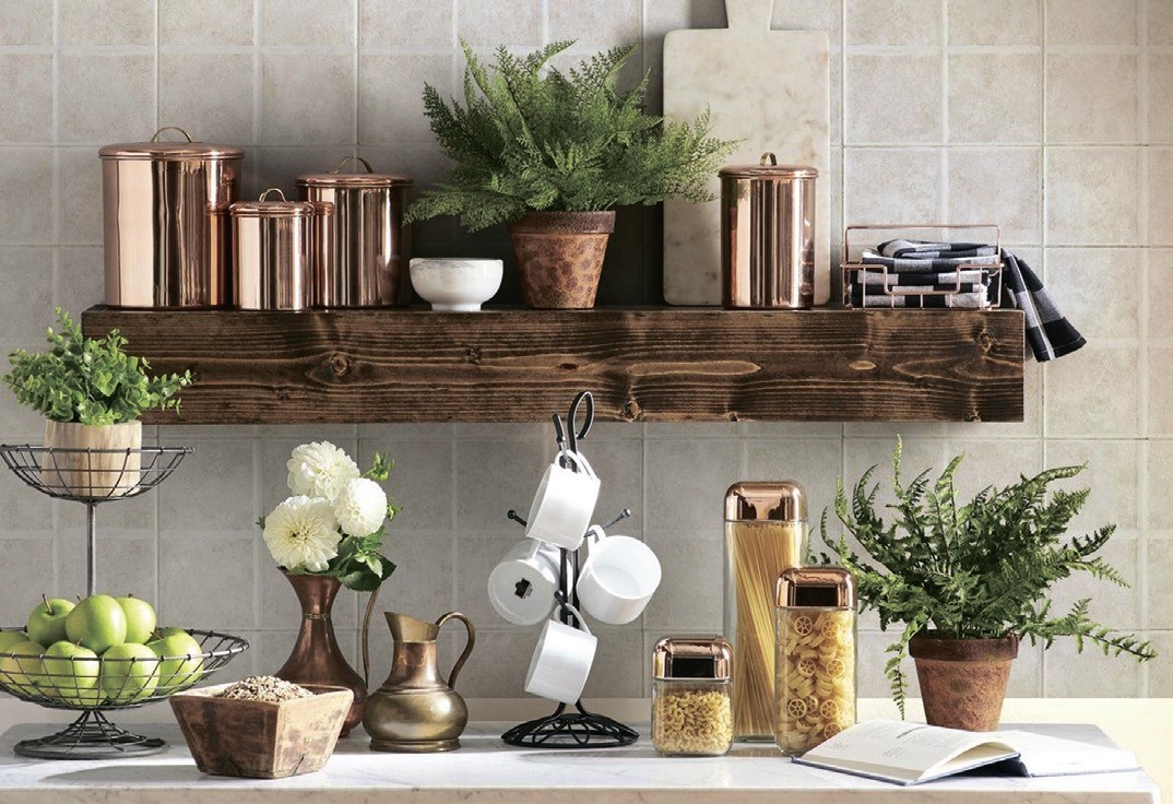 - Дерево: подносы и разделочные доски из натурального дерева смотрятся особенно привлекательно в сочетании с текстилем и зелеными растениями.