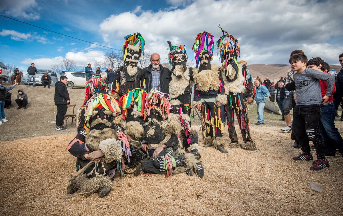 Во время празднования процессия обходит дома, собирая продукты и угощения для общего стола. Археологические находки, такие как серебряная чаша из Триалети с изображениями масок, подчеркивают долгую историю таких традиций на Кавказе.