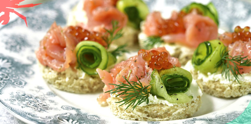 На каждый кусочек хлеба укладываются ломтики красной рыбы, рулетики огурца, затем небольшое количество красной икры и укроп. Для завершения композиции посыпьте все молотым черным перцем по вкусу. Ваше блюдо готово к подаче, и оно не только порадует глаз, но и составит отличный перерыв во время общения с друзьями или родными.