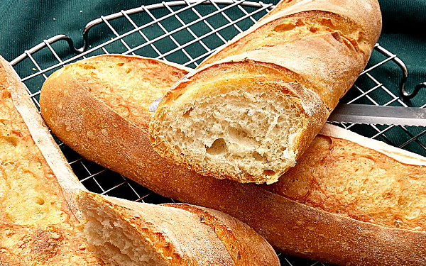 Из этого количества ингредиентов получится четыре мягких багета с хрустящей корочкой.