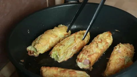 3. В отдельной миске взбейте яйцо, в которое нужно окунуть подготовленные сосиски. После этого обжарьте их на сковороде с разогретым растительным маслом до золотистого цвета с обеих сторон. Если хотите, можно сначала запанировать сосиски в панировочных сухарях.