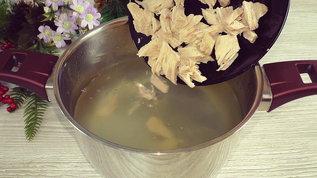 Первым делом стоит сварить бульон. Свинину (или другую мясную основу) залить холодной водой, добавить луковицу, чеснок и чёрный перец горошком. Довести до кипения, удаляя пену, затем варить на медленном огне до готовности мяса. Соль можно добавлять сразу, чтобы бульон был вкуснее.