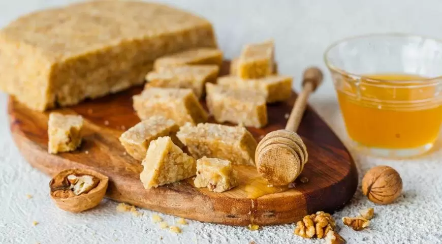 Приглашаем вас освоить приготовление халвы по кавказскому рецепту! В отличие от привычных вариантов, эта сладость готовится из простых ингредиентов – муки, масла и меда. Грецкие орехи придадут блюду хрустящий оттенок, хотя можно и обойтись без них.