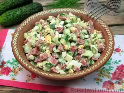 Когда времени в обрез, салат с колбасой, свежими огурцами и яйцами станет вашим спасением. Простота его приготовления и доступность ингредиентов делает его идеальным выбором для быстрого перекуса.