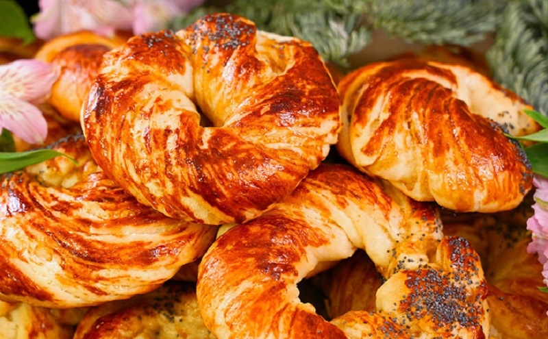 Формовка превращает тесто в узор: каждый слой смазывают маслом и складывают, чтобы новая площадь стала ещё тоньше и светлее. Спирали, бантики и переплетения — варианты на вкус: главное, чтобы структура сохраняла воздушность и после выпечки оставалась липкой к зубам и мягкой внутри. Глянцевую корочку достигают лёгким смазыванием перед отправкой в духовку.