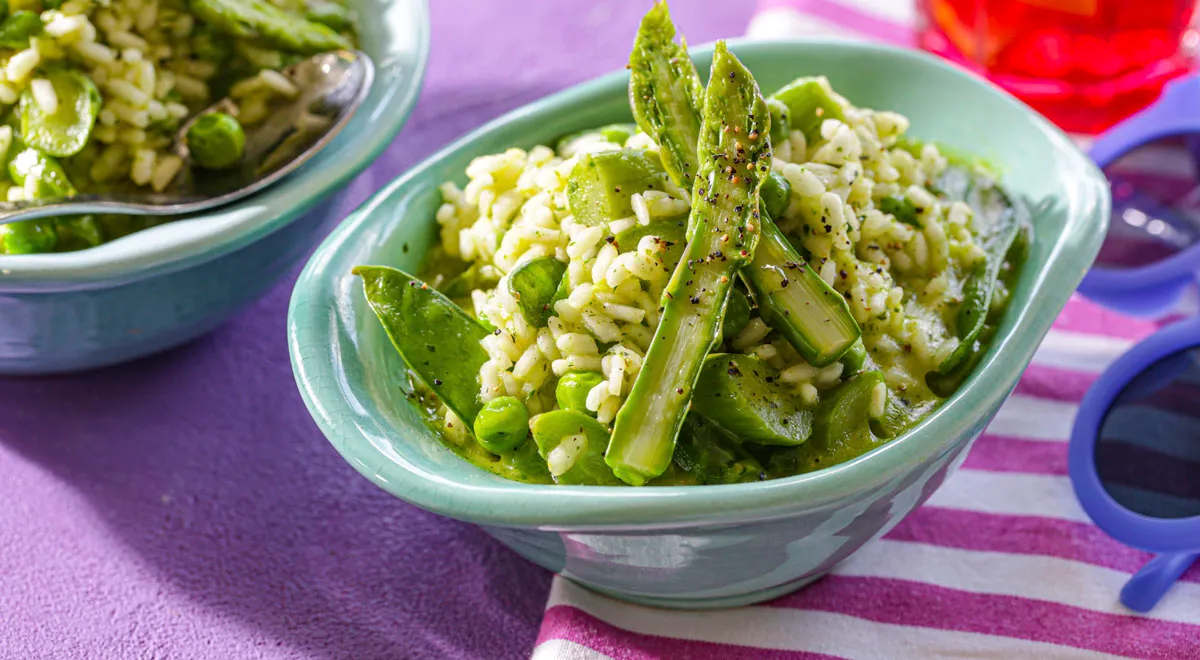 Ризотто — это не просто еда, это праздничное мгновение на кухне! Этот итальянский шедевр славится своей удивительно нежной текстурой и насыщенным вкусом. А когда добавляется спаржа и зелёный горошек, блюдо превращается в легкое и свежое угощение, которое идеально подходит для весеннего и летнего обеденного стола. Пармезан придает ему изысканности, обогащая рецепт оригинальными нотками.