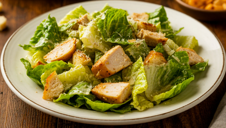 - 2. «Цезарь» с курицей: этот вариант станет сытным основным блюдом. Куриное филе обжаривается до золотистой корочки, добавляется к уже известным ингредиентам.