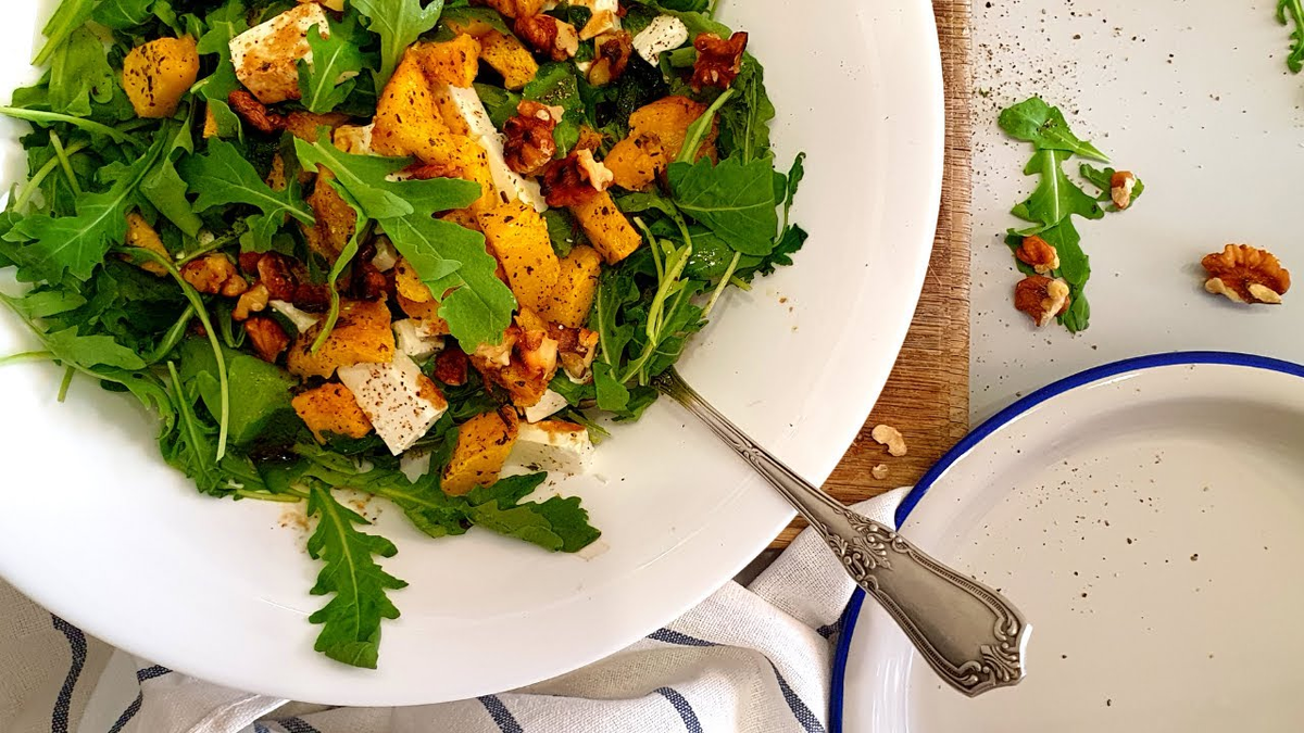 Вдохновленный символами удачи, этот салат сочетает сладкую тыкву и пикантный козий сыр. Он станет настоящим украшением стола.
