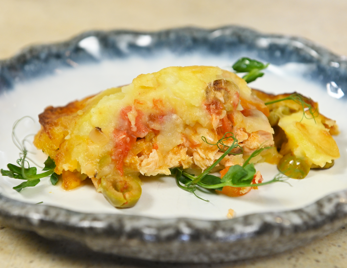 В традиционном рецепте пастушьего пирога обычно используется мясной фарш, однако шеф-повар Григорий Мосин предлагает интересную альтернативу — заменить его на лосось. Это решение делает блюдо невероятно легким и ароматным, сочетая в себе нежность рыбы с сытным картофельным слоем и плавкими шариками моцареллы!