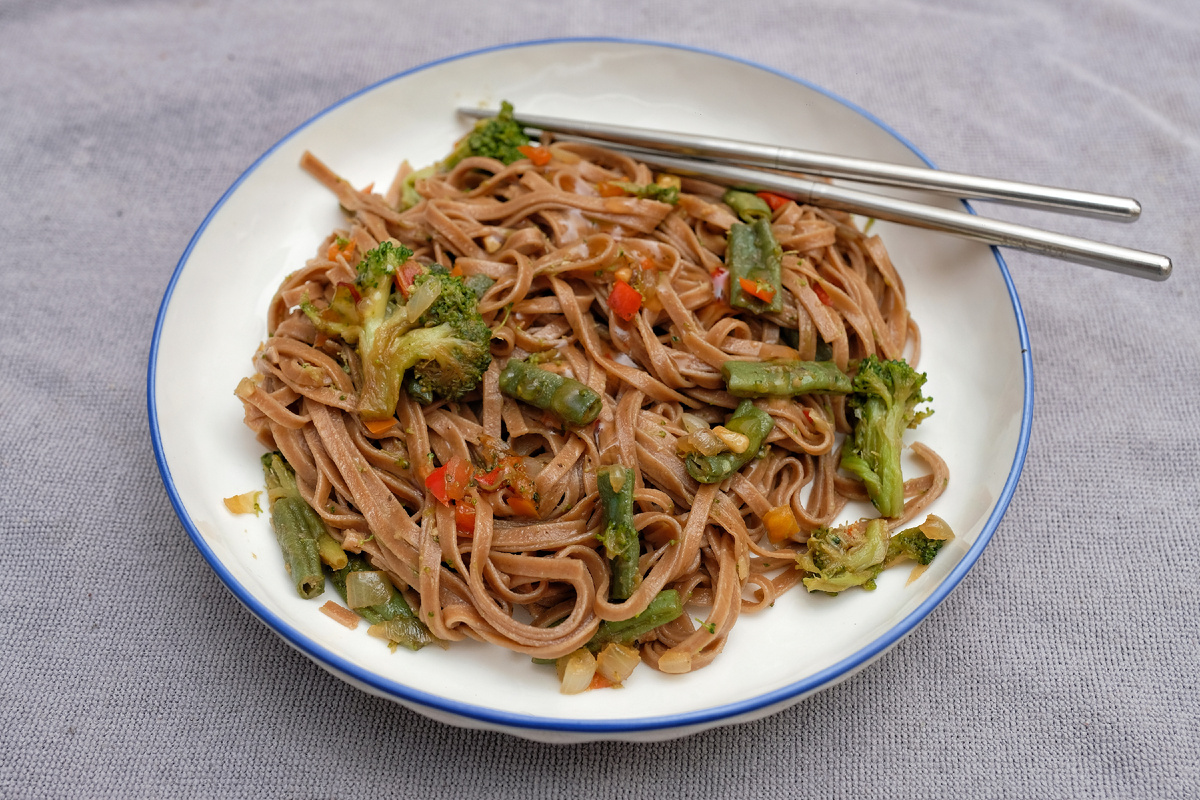 Ароматная гречневая лапша с овощами: легкое постное угощение