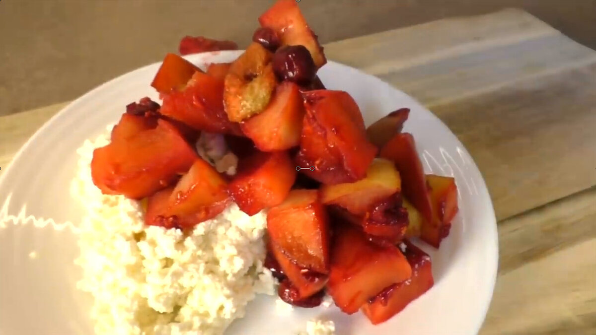 Яблоки впитают сок ягод, а запах будет невероятно аппетитным. Чтобы сделать это блюдо еще более вкусным, подавайте его с творогом. Можно использовать творог любой жирности, но лучше выбирать легкий вариант, чтобы поддержать легкость десерта. Завершающим штрихом станет щепотка корицы, которая добавит дополнительный аромат.