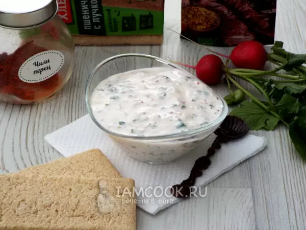 Этот соус представляет собой легко усваиваемую комбинацию свежести и легкости, благодаря своему основному ингредиенту — редису. На выбор можно использовать петрушку вместо кинзы, а йогурт заменить сметаной. Это делает рецепт более гибким и доступным для различных вкусовых предпочтений.