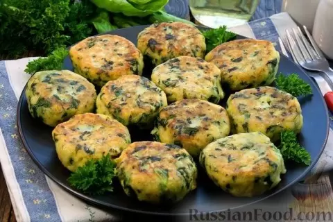 - Картофельные котлеты со шпинатом: Нежные и мягкие, с добавлением обжаренного чеснока, которые подарят вашему обеду новые ароматы.
