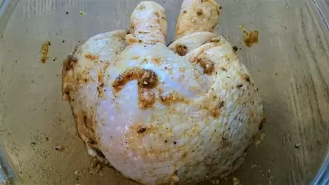 Для этого рецепта лучше всего использовать части курицы, богатые вкусом, такие как бедра, голени или окорочка. Их необходимо замариновать, чтобы развить аромат. В миску выдавить чеснок, добавить специи, соль, черный перец и немного растительного масла. Масло поможет специям лучше проникнуть в мясо.
