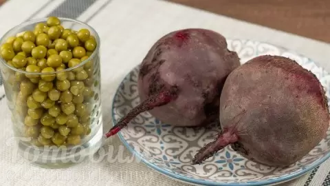 - Салат со свеклой и яблоком: объедините 500 г свеклы, одно кислое яблоко, 240 г консервированного горошка и грецкие орехи. Заправьте растительным маслом и уксусом.