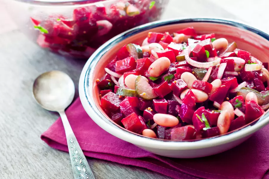 Салат, получивший название "Невинегрет", является редким сочетанием свеклы, огурцов и фасоли. Эта концепция кардинально отличается от привычных винегретов, так как в ней отсутствуют такие ингредиенты, как картофель или квашеная капуста. Главная изюминка — добавление фасоли, что делает блюдо более сытным и питательным.