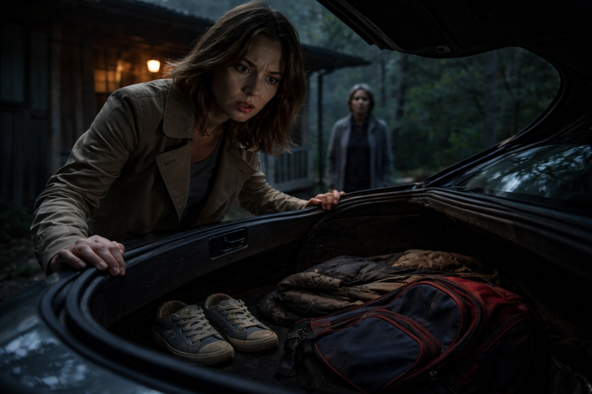 После короткой перепалки о машине, Лена обратила внимание на слегка открытый багажник. Внутри её ожидали детские кроссовки, рюкзак и куртка мужа, в которой он, как сказала она, «уехал в командировку». Вопросы нарастали.